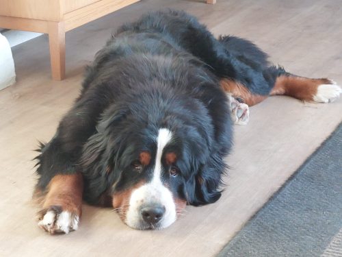 I sommers mistede vi desværre vores kære Tau, men lige før Jul flyttede Eddie til Thy. Han er også en Berner Sennen, men stadig en ung knægt på 16 måneder, men han er en rolig og glad hund der ligesom sig bror gerne vil sige hej.