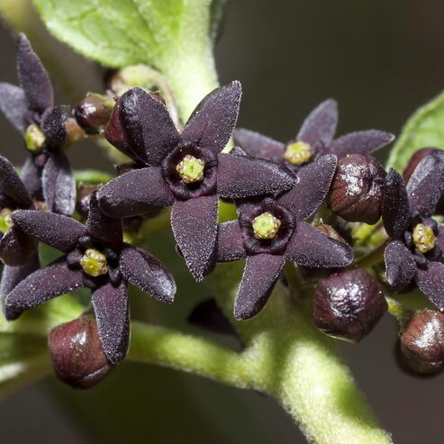 De lækre mørkegrønne blade fremhæver de hvide blomster.