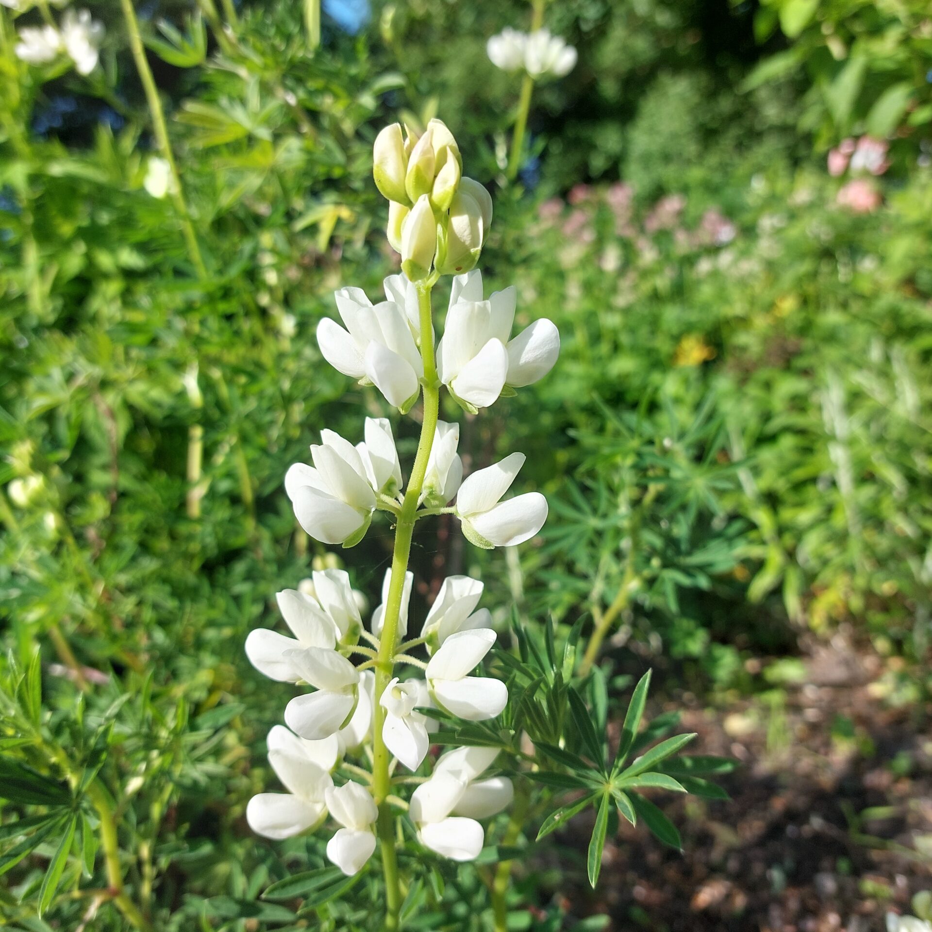 Det er Nepeta “White Dreams”. Dens rent hvide rørformede blomster passer både fint i bedene og i buketter, hvor den en meget holdbar. Den bliver ca. 60 cm høj, kan stå i sol og halvskygge og er ikke kræsen med jordbundsforhold,